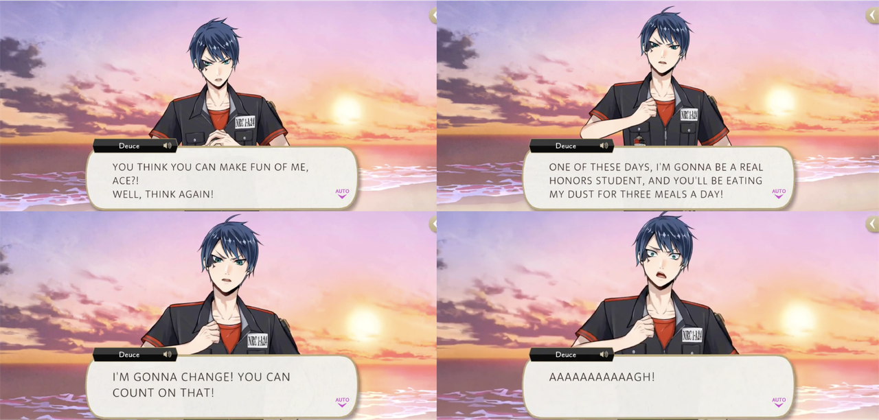 Deuce sees a montage of Ace insulting him in various ways, including his comment from Book 5, and tells Dream-Ace, “The REAL Ace is way more inconsiderate and annoying than you!”