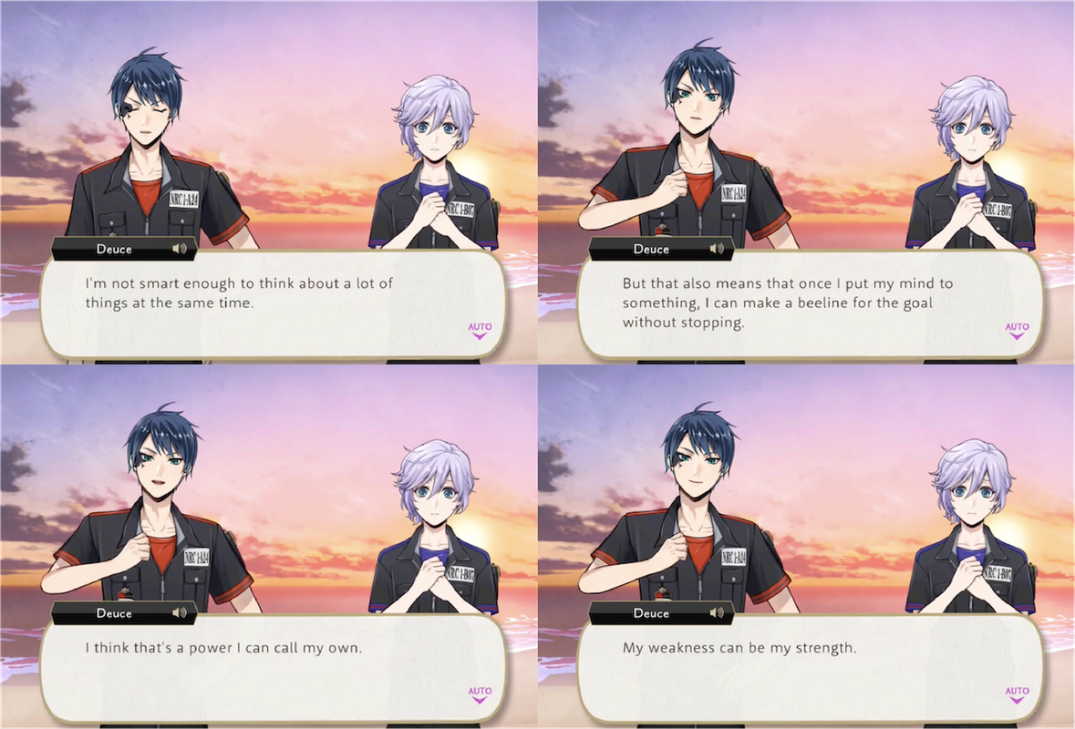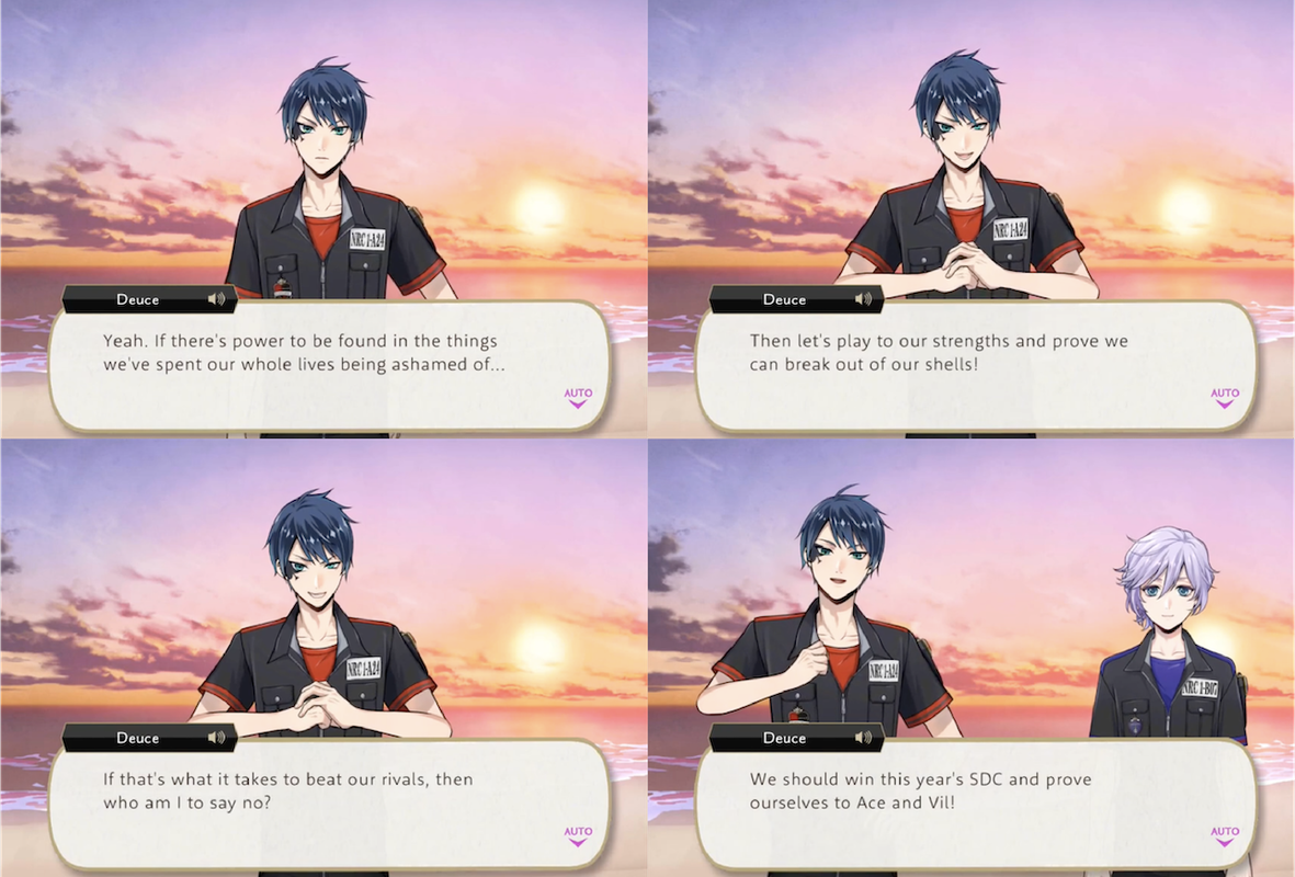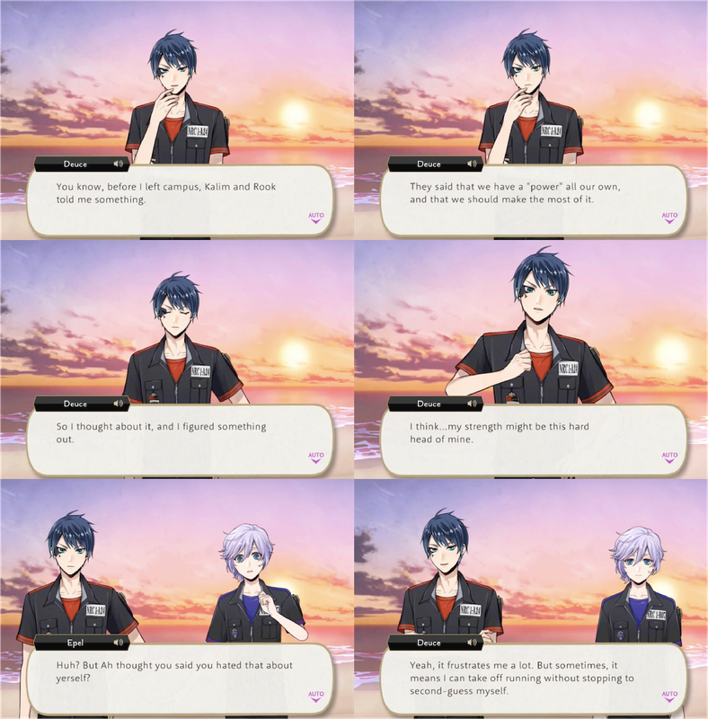Deuce decides that he and Epel should play to their strengths and prove themselves to Ace (for him) and Vil (for Epel).