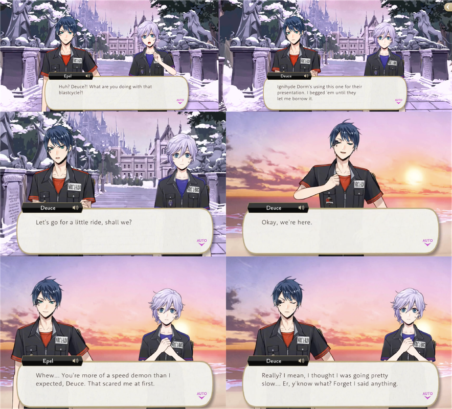 Deuce borrows a blastcycle from Ignihyde during Book 5 to take Epel to a beach, surprising Epel with his speed (Deuce: “Really? I mean, I thought I was going pretty slow… Er, y’know what? Forget I said anything”).