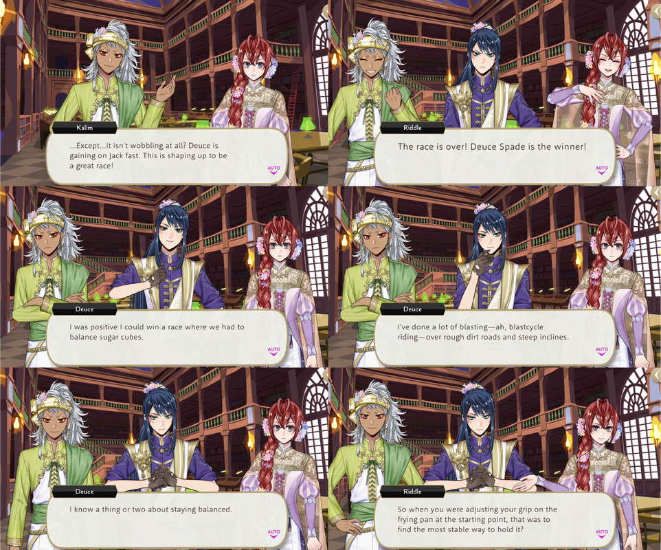 Deuce challenges Jack to a race that involves balancing sugar cubes on frying pans, coming out on top despite setting off long after Jack. Deuce explains, “I’ve done a lot of blasting-ah, blastcycle riding-over rough dirt roads and steep inclines. I know a thing or two about staying balanced.”