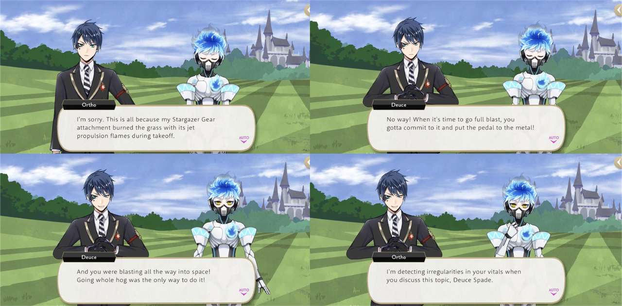 When Ortho apologizes for his Stargazer Gear burning grass on the sports field that Deuce and the others must then clean up Deuce says, “When it’s time to go full blast, you gotta commit to it and put the pedal to the metal!,” possibly in a reference to blastcycles. Ortho responds, “I’m detecting irregularities in your vitals when you discuss this topic.”