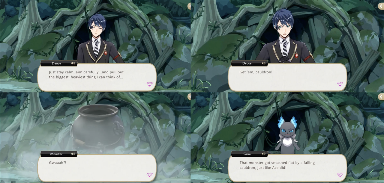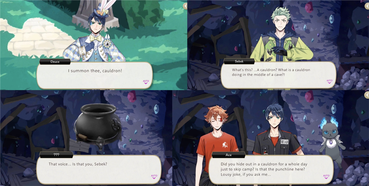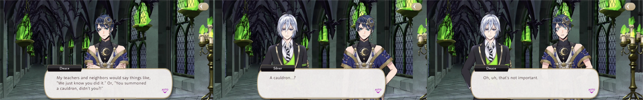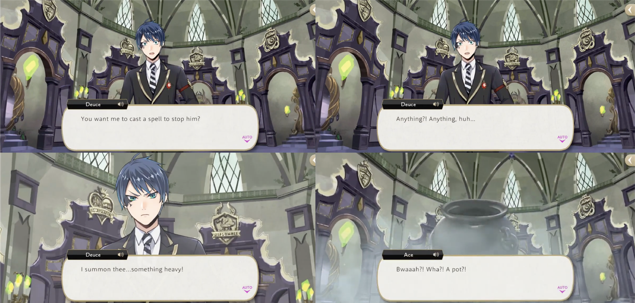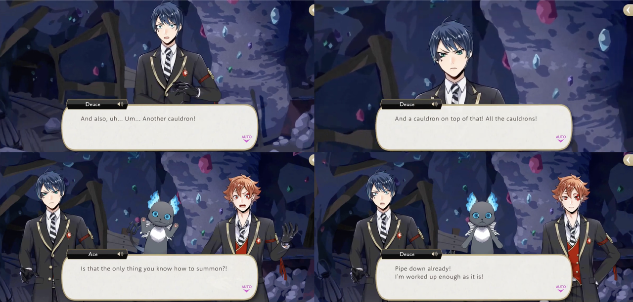 Ace asks if cauldrons are the only thing Deuce knows how to summon and Deuce is asked a similar question in the novels, where he responds that they are the only thing he can think of in the heat of the moment because when he thinks of mages, he thinks of cauldrons.