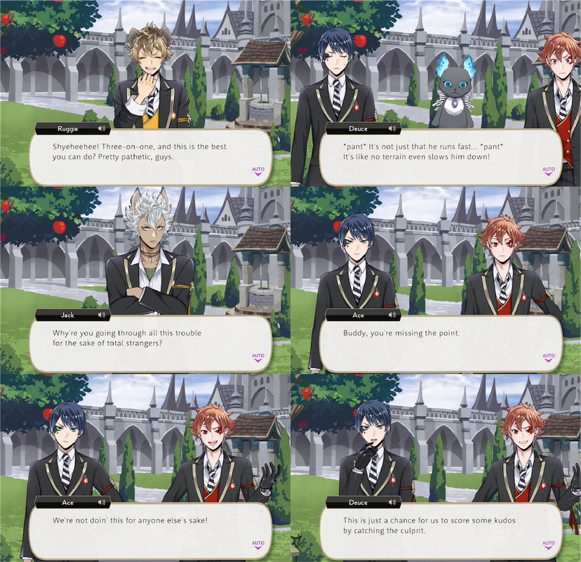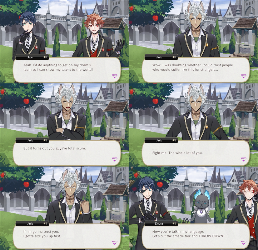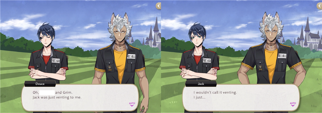 During Halloween Jack confides his problems to Deuce despite his reluctance to to take Savanaclaw’s problems to other dorms, and in a vignette we learn that Jack will vent to Deuce as well, though Jack also tends to make disparaging comments about Deuce’s intelligence that Deuce does not appreciate.