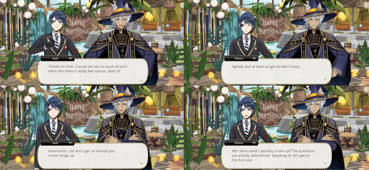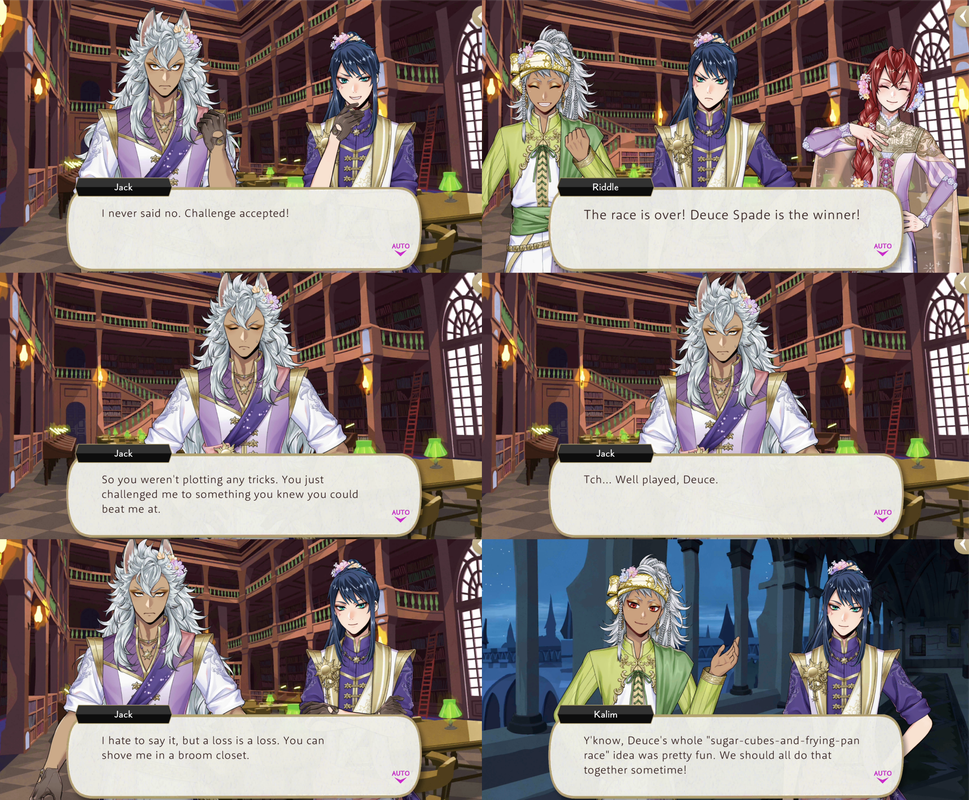 Afterwards Kalim says that they should try the race again and Deuce agree if they “don’t mind (him) winning.” Jack says, “I’m winning the next one, obviously.”