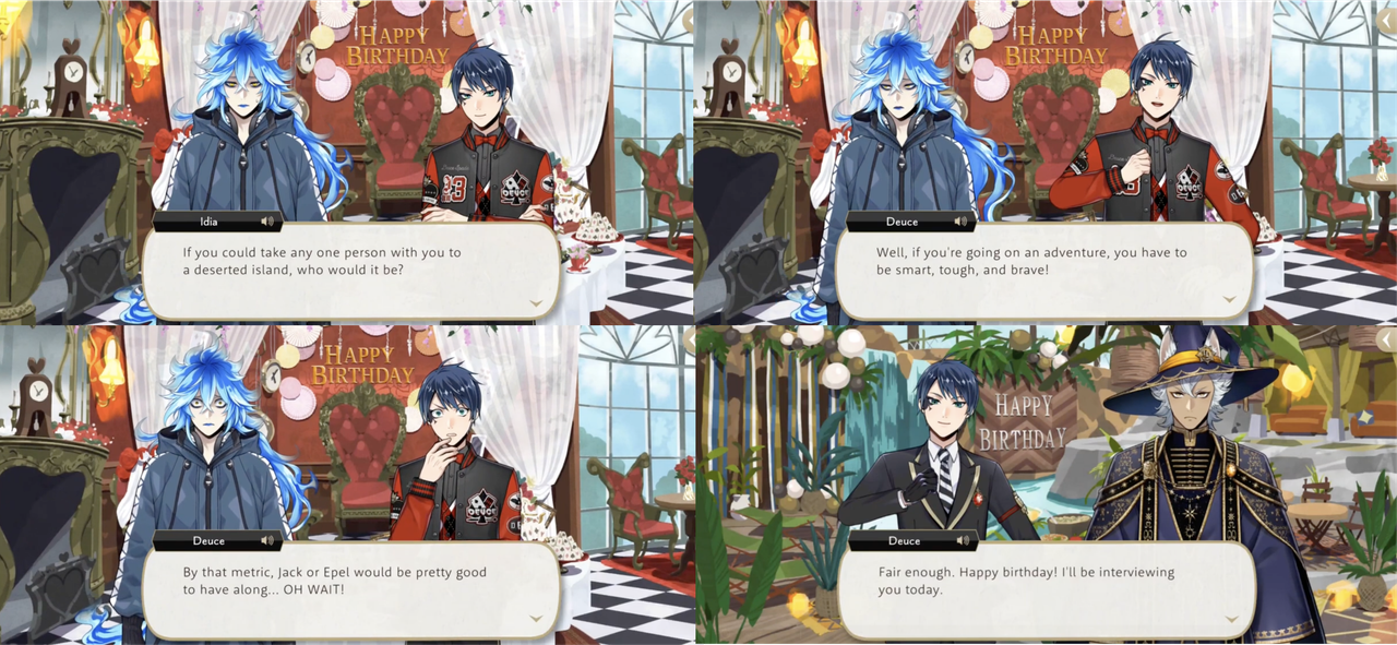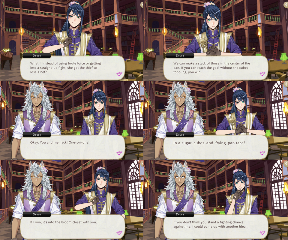 Deuce and Jack get into an argument during the Rapunzel event that escalates into Deuce challenging Jack to a “sugar-cubes-and-frying-pan race,” with Jack having to fill the role of the thief from a fairy tale and get locked in a broom closet if he loses.