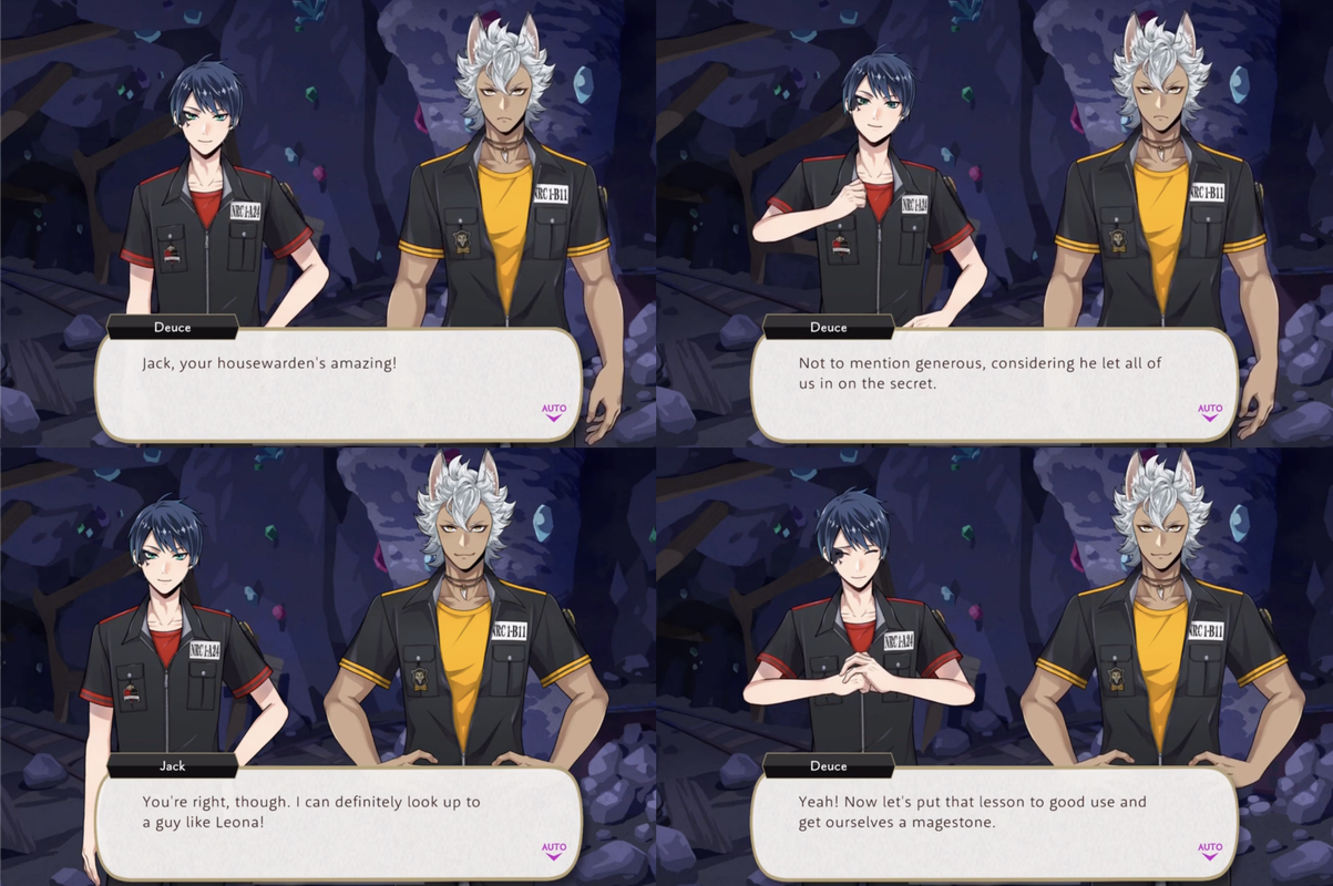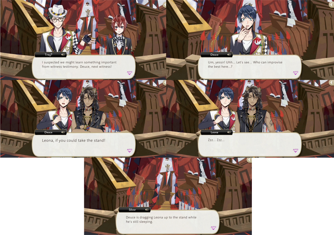 Deuce and Leona overlap during Vargas Camp when Leona gives both his own spelldrive club members and Deuce and Jack of the track and field team a lecture on how to find magestones (Deuce: “Does he really mean everyone? Like, even if we’re not in his club?”).