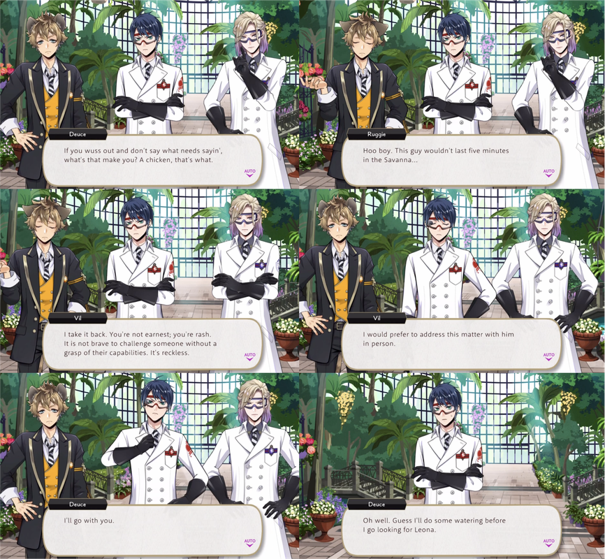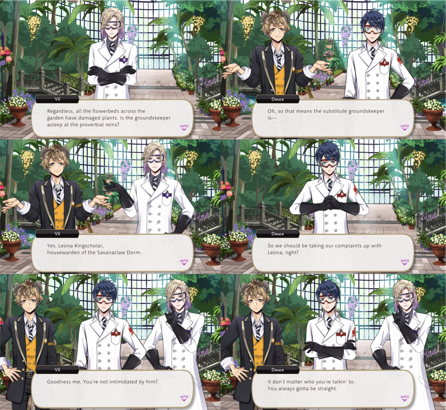 When Vil says he wants to address the issue with Leona in person Deuce volunteers to join him.
