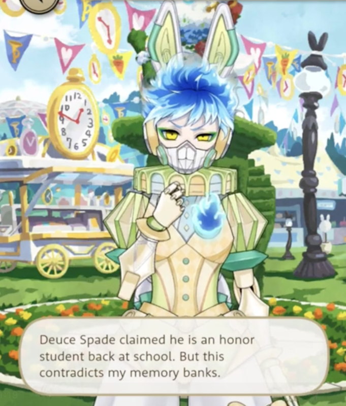 Ortho has a voice line of, “Deuce Spade claimed he is an honor student back at school. But this contradicts my memory banks.”