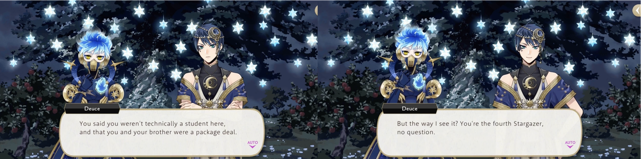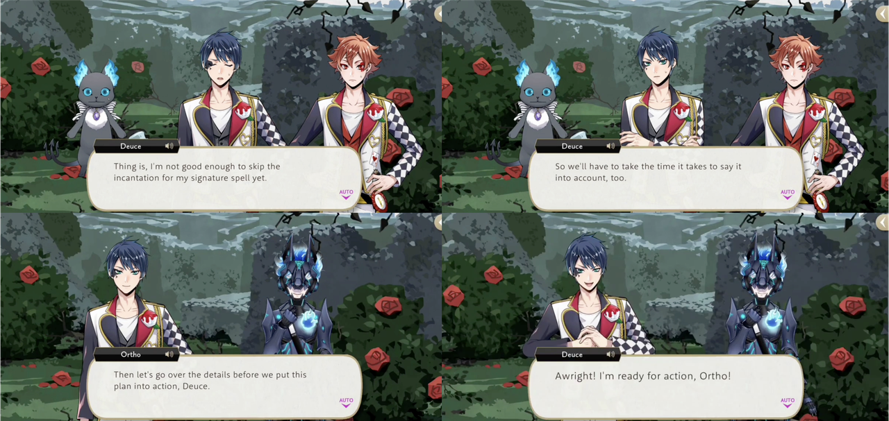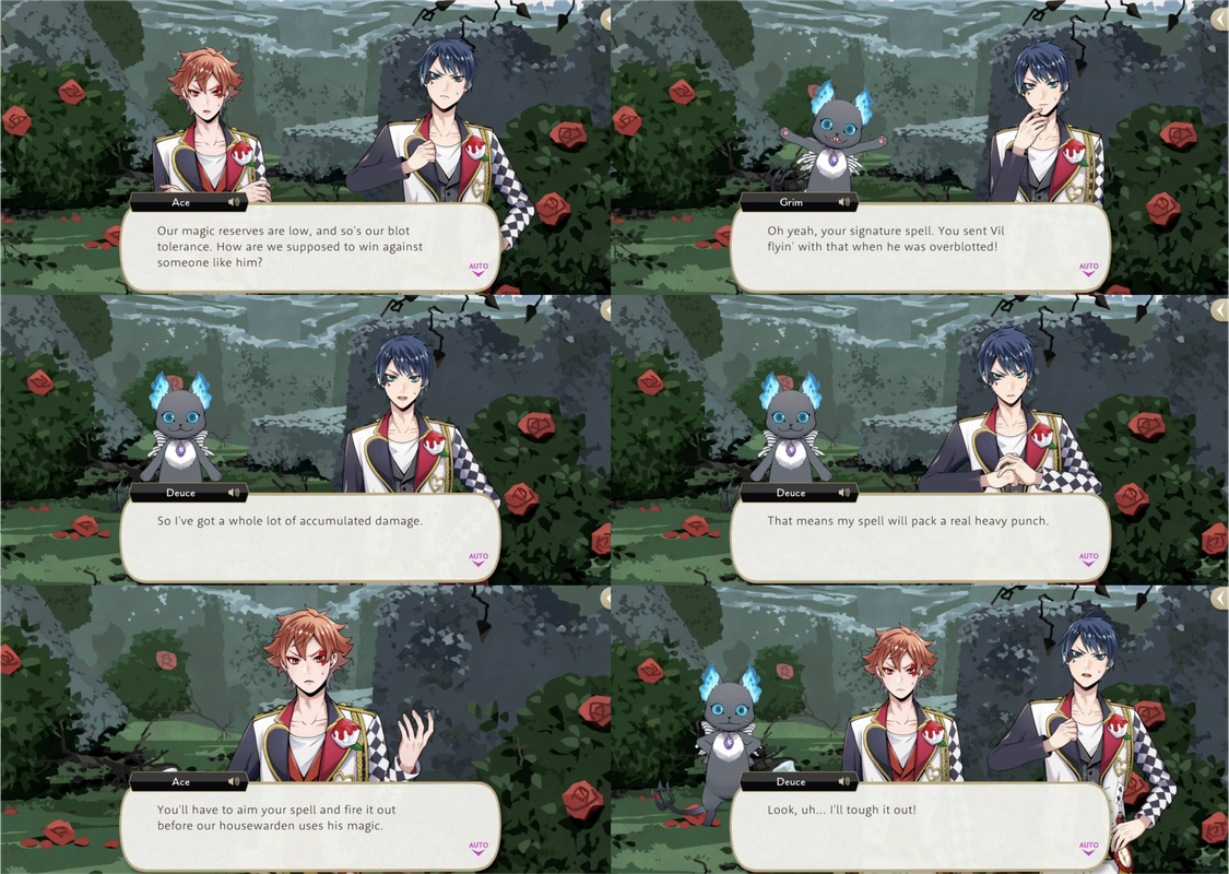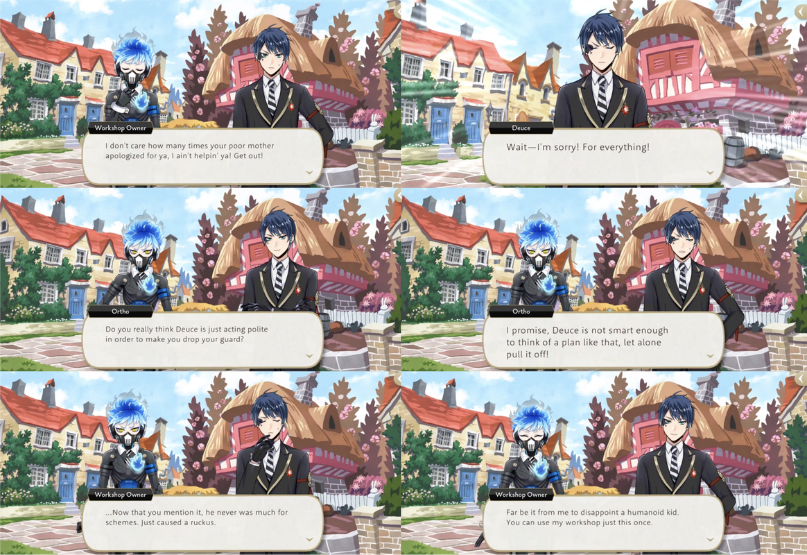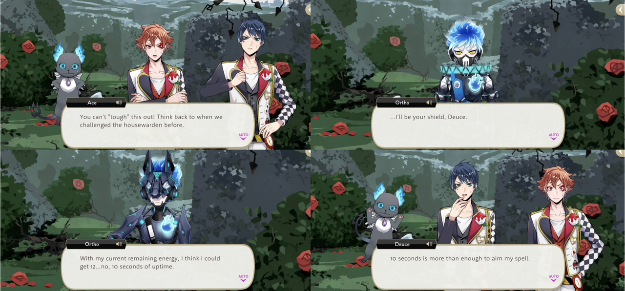 Deuce and Ortho overlap in a vignette where Deuce tries to stop Diasomnia students from bullying Ortho, saying that he knows they are going to regret it later.