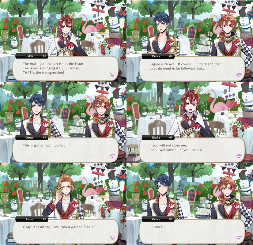 When Riddle refers to Deuce as “an exceptional card soldier” during the lantern event Deuce responds, “I’m honored by the compliment, Housewarden!”