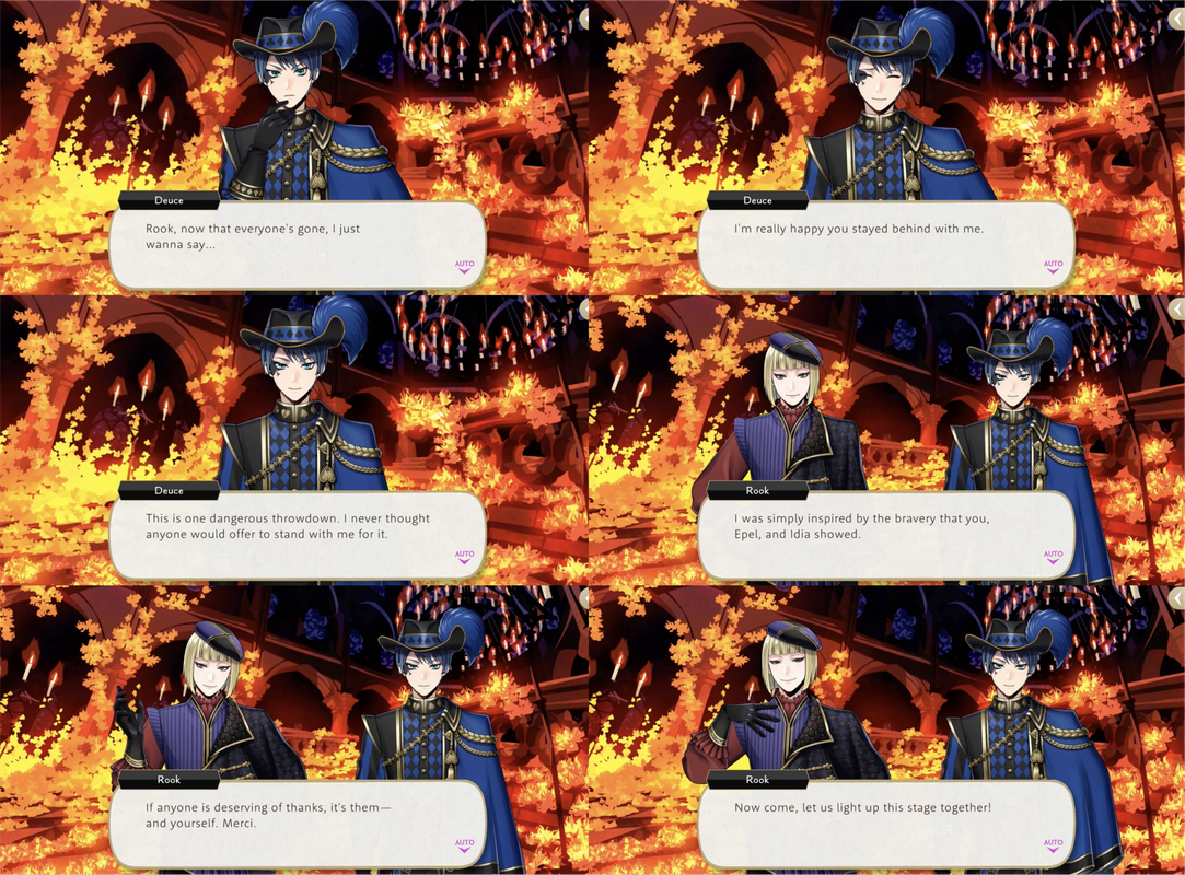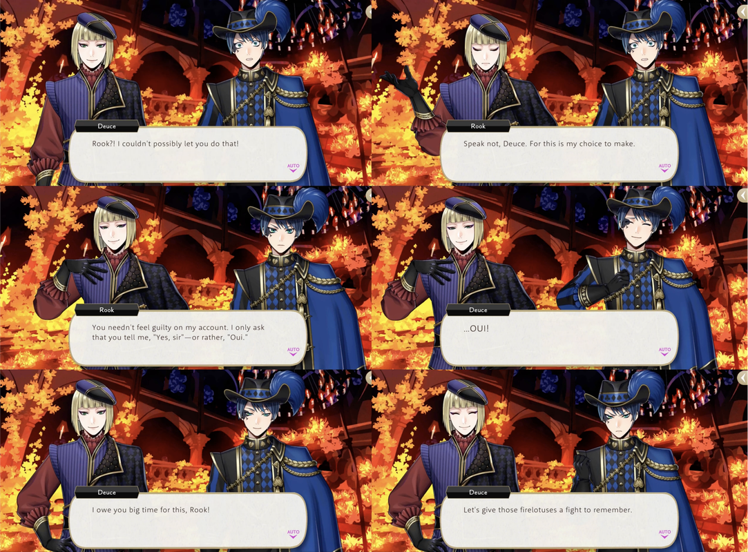 Inspired by Idia’s courageousness, Rook announces that he will be staying with Deuce instead, despite Deuce’s protests.