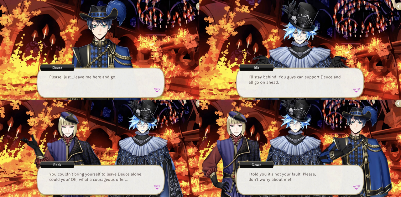 After Deuce drops out of the Glorious Masquerade group, having injured himself saving Idia’s life, Idia wonders if he should have stayed back with Deuce and Rook as he has grown tired of running.