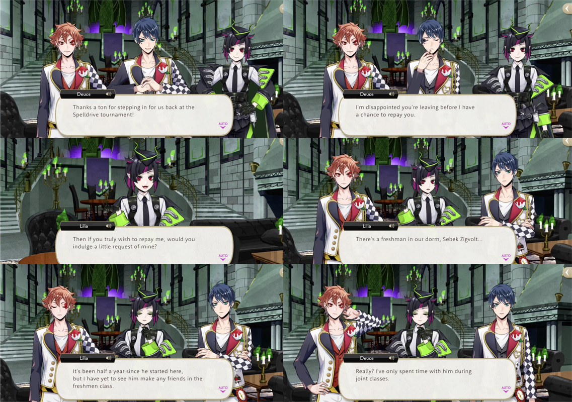 Sebek says that they have joint classes together and Deuce “presents himself well enough,” but Sebek has always suspecting he wasn’t “entirely upstanding,” having “seen him stay after class somewhat frequently.”