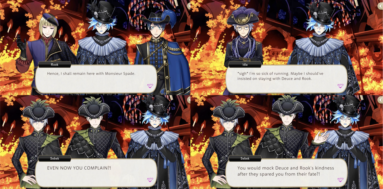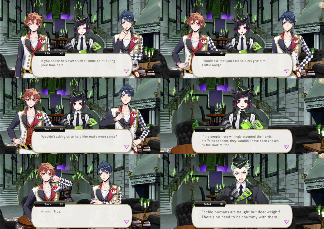 Deuce asks if he doesn’t want them to help Sebek instead and Lilia observes, “If the people here willingly accepted the hands proffered to them, they wouldn’t have been chosen by the Dark Mirror,” and Deuce agrees.