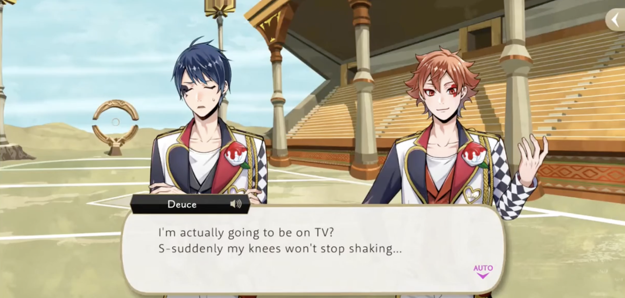 Before Deuce’s Starsending performance Ace says, “If I know Deuce—and I think I do by now—he’s gonna be so freaked out he’s frozen stiff. There is then a scene cut to Deuce, worrying if they will be able to manage the performance after all.