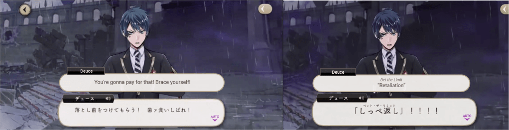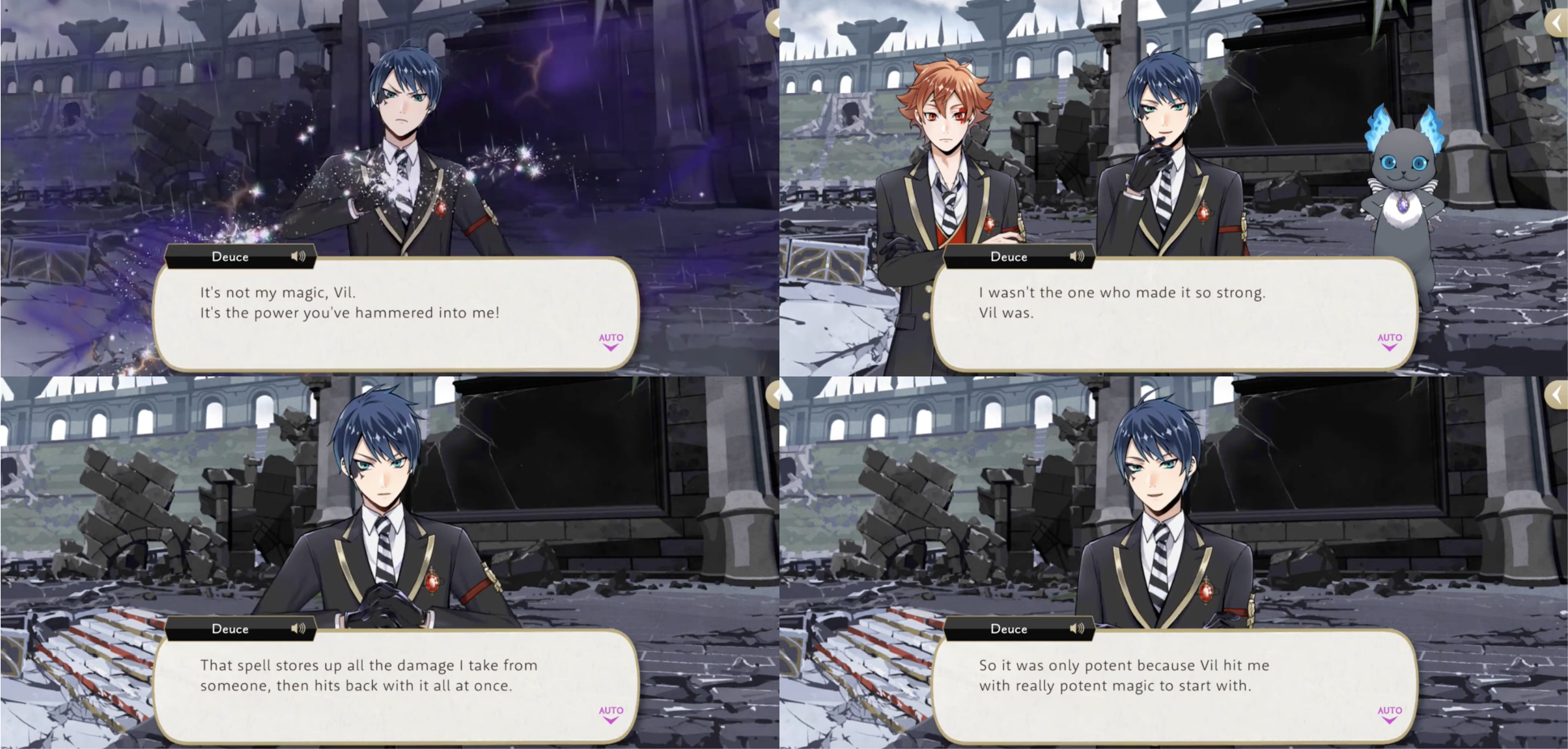 Deuce’s unique magic makes another appearance in the game during Glorious Masquerade, when Azul borrows it and then takes a direct hit from Rollo, explaining, “I saved a special present just for you and loaded it with all the nonsense you put me through.”