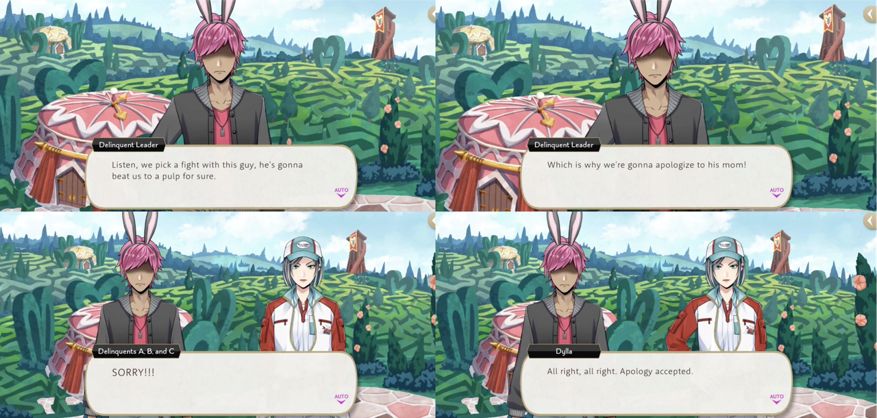 Recognizing Deuce as “the delinquent of legend” the main bully orders his gang to apologize to Dylla as they promised, and Dylla accepts, saying, “As long as you make sure no one gets hurt, do what you like, I say! Just keep that in mind.”