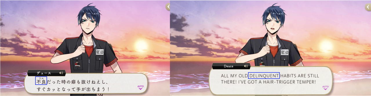 Going in the yankee direction is something that 不良 (furyou) choose to do sometimes, and 不良 are referenced often in Twst, translated on EN as “delinquents” or “young punks,” basically a starting point for kids who will maybe imitate some yankee styles (like Deuce and Epel), get often get into fights, smoke while underage, skip school, etc.