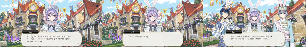 This was one of the various dichotomies that made the White Rabbit Fes event so fun: Epel goes to Clock Town having heard that it is overrun by 不良, saying he assumed “the town would be awash in modded blastcycles, with 不良 getting into fights all over the place,” and he is disappointed by the reality as he had been “hoping someone would pick a fight with us so l could send them packing.”