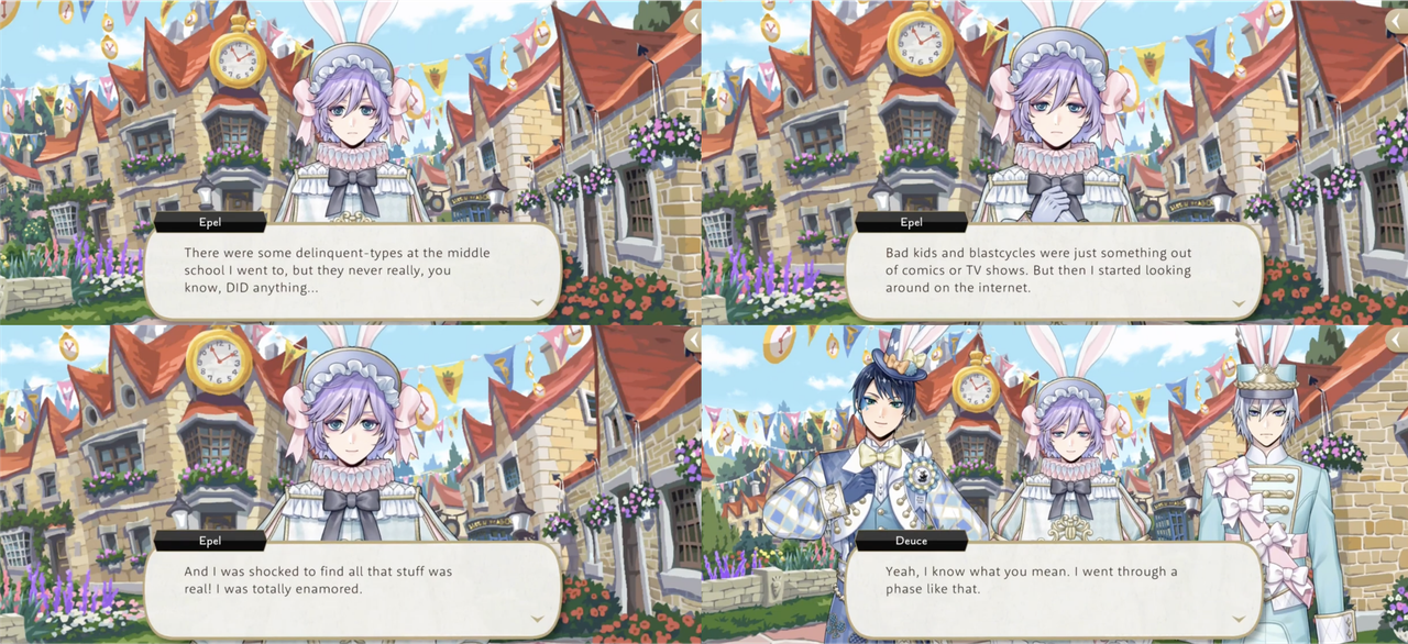 During White Rabbit Fes Epel says he had only heard of 不良-types in comics and TV shows (Idia and Ortho also talk about 不良 of manga, TV shows and movie), and he was shocked to learn that all of it is real. Deuce says, “I know what you mean. I went through a phase like that.”