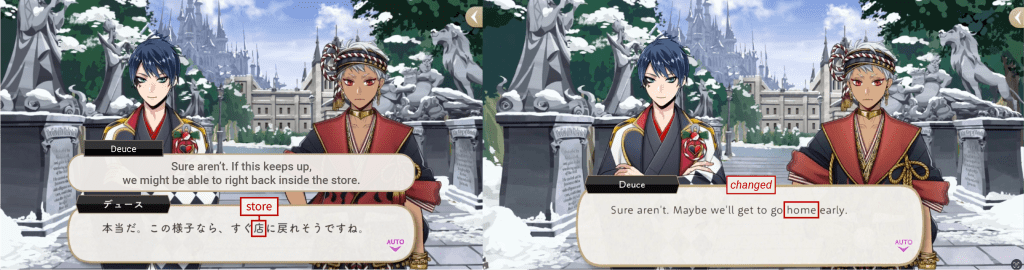 While Deuce’s declaration to Ace that he will be becoming one with the wind was changed for EN in his school uniform vignette, his callback line of “I just became one with the wind” in Book 7 was translated accurately.