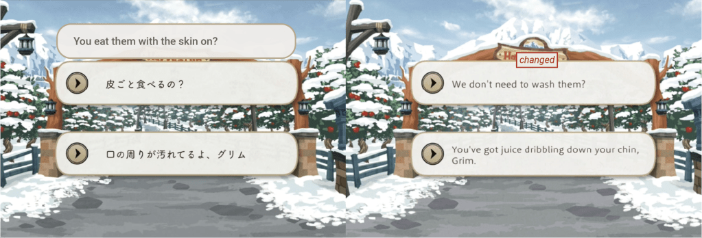 (Which is what EN did for Cater in Firelit Sky, changing his “-chan” honorific for Najma to the nickname “Najmie.” In his original dialogue, Cater never calls her “Najmie.”)