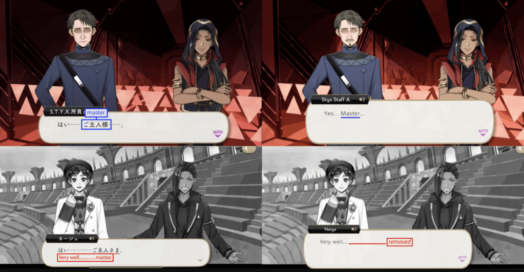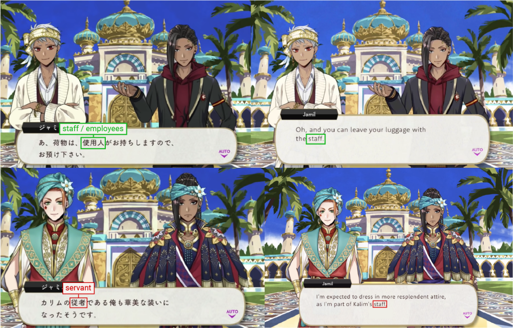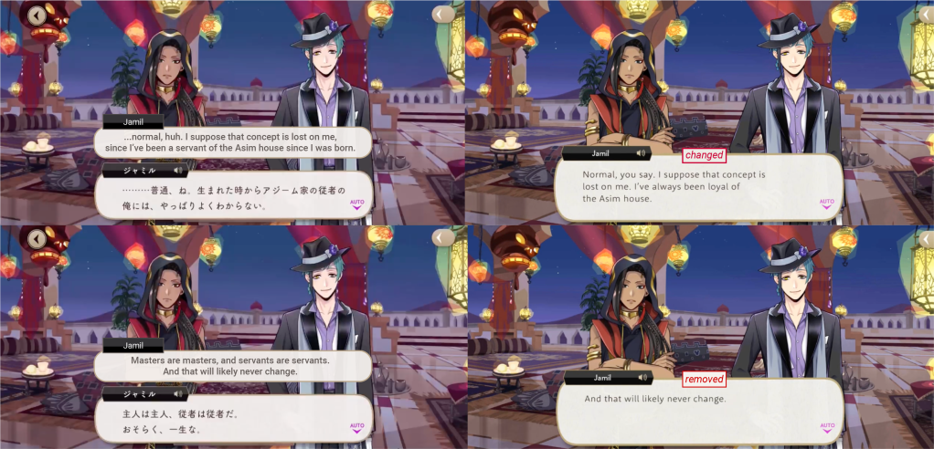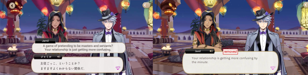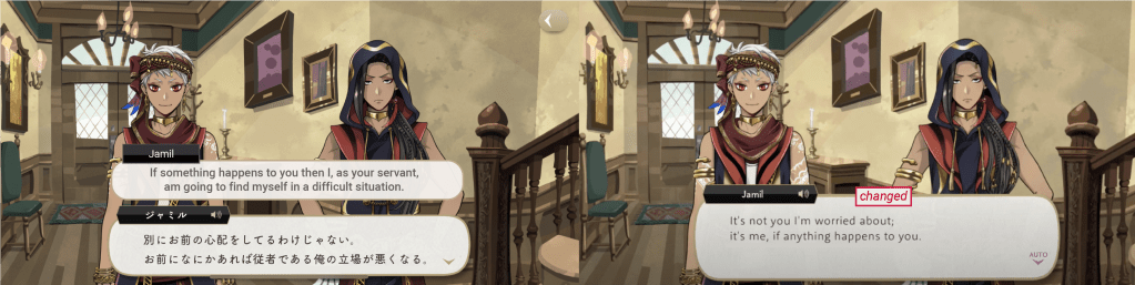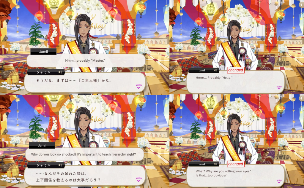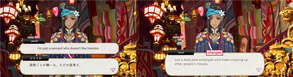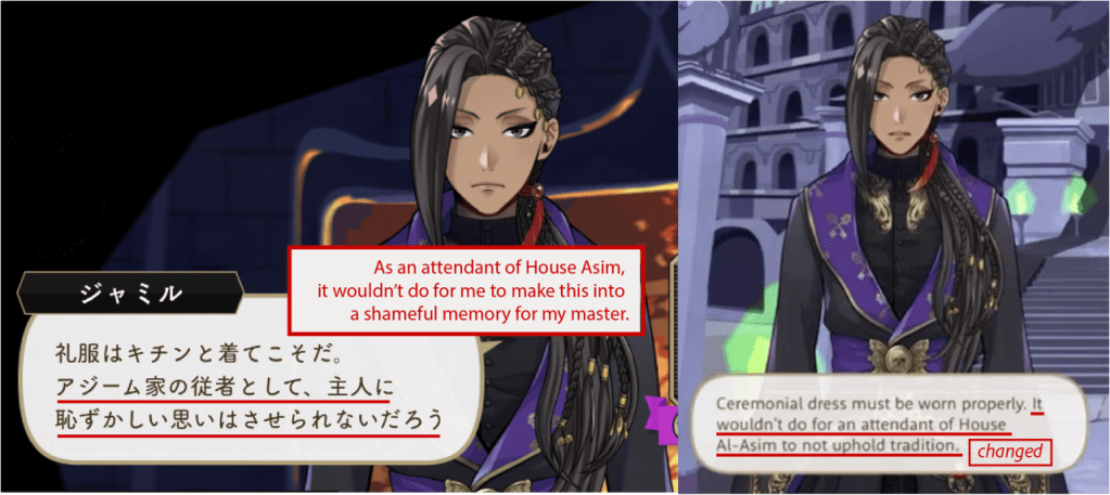 While the word “servant” was translated directly in another character’s dialogue from earlier on in the same event, it was removed from Jamil’s.