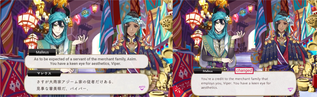 Original Malleus: As to be expected of a servant of the merchant family, Asim. You have a keen eye for aesthetics, Viper.