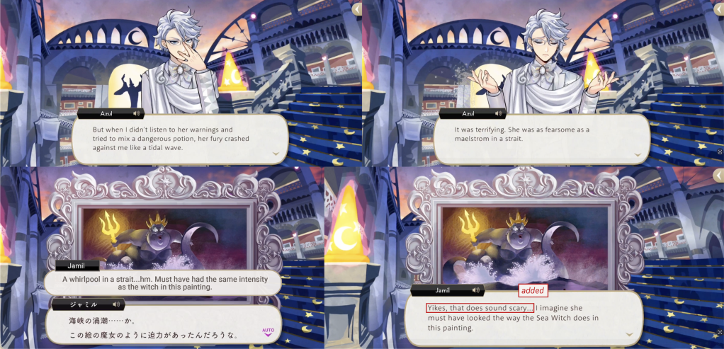 (“Yikes, that does sound scary”) added to Jamil’s EN dialogue.