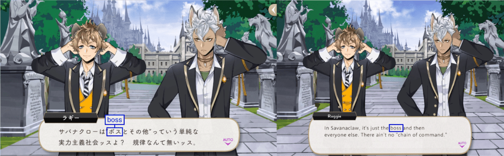 Ruggie never actually calls Leona “boss” during Book 2 (he does during Vargas Camp (as a sports term) and indirectly in Jack’s dorm vignette, but it is rare). More here: Ruggie’s Speech Patterns. (Video here)