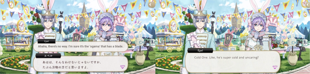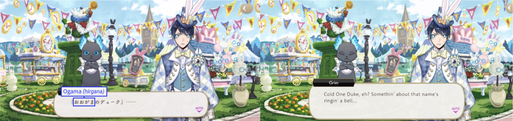 Both Grim and Silver repeat “ogama” in hiragana, since they don’t know which “ogama” Epel means (the hiragana alphabet is just sounds, and the symbols do not have individual meanings like kanji do).