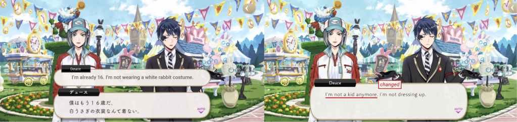 Likely removed for language limitations, the Black Bunny leader switches mid-sentence from saying “Deuce-san” to “Aniki.”