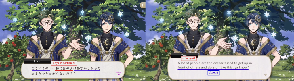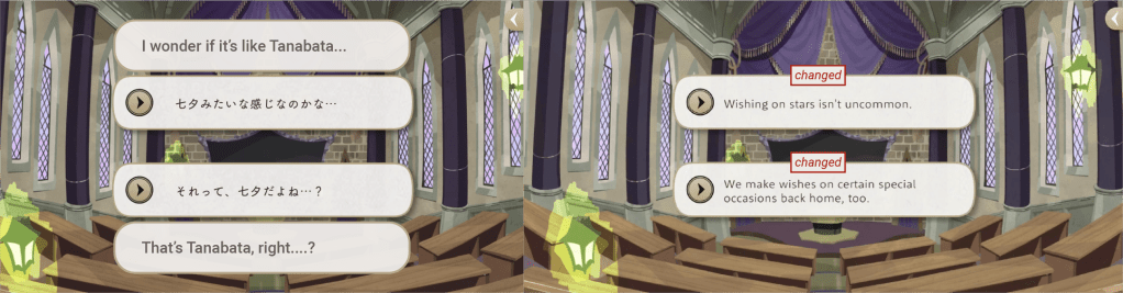 The holiday “Tanabata” might not be very well known amongst the target audience for the English adaptation of the game, so it makes sense that these options were rewritten.