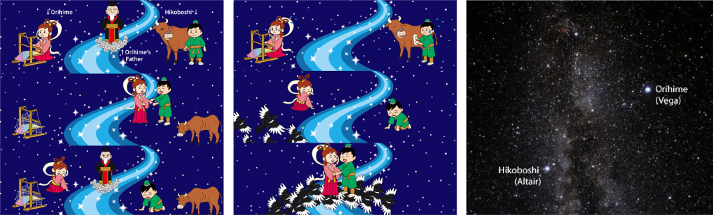 Orhime’s father separated them on either side of the Milky Way to force them back to work, only allowing them to meet on the 7th day of the 7th month.