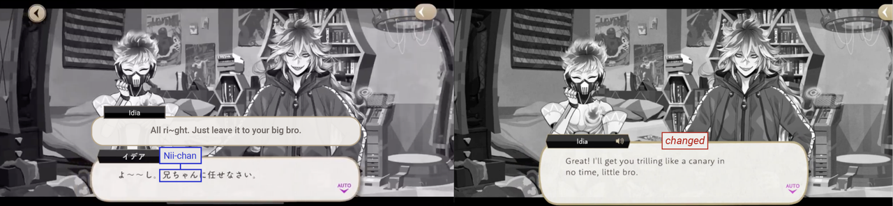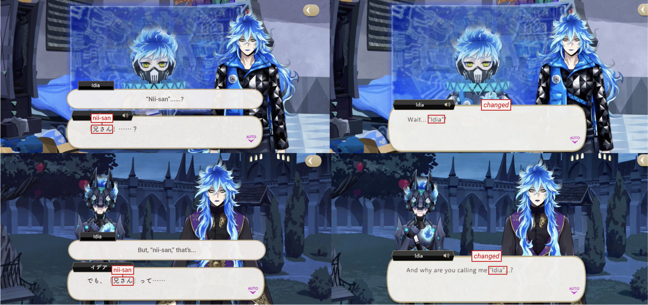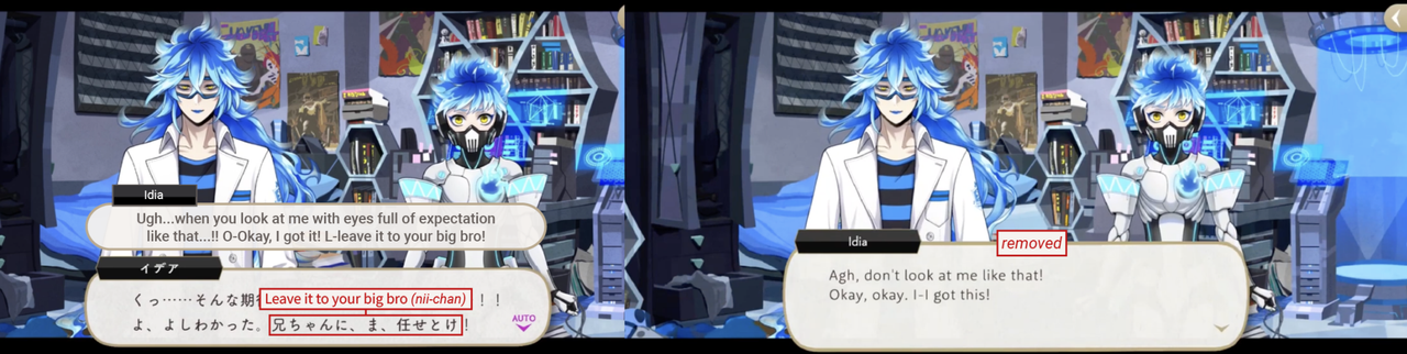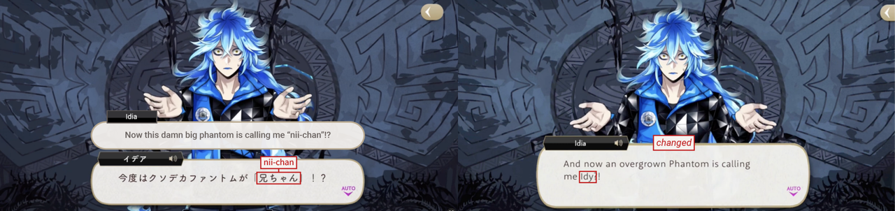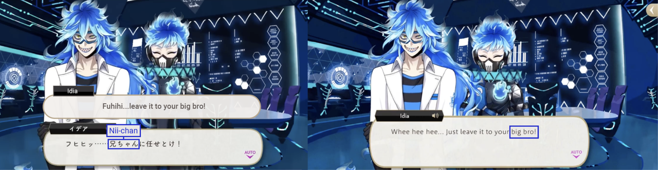 The English-language translators can only work with what they have, and it’s possible they haven’t been told what points are going to be recurring, etc., so changes that they make to the localization that would be innocuous in any other situation are turning out to be important later on. And we have seen this before, also with Idia: