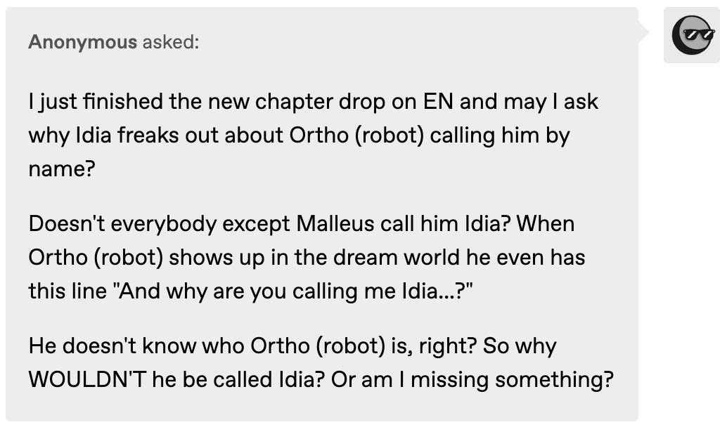 And that is why it seems that Idia is confused by someone referring to him in the same way that most all the characters do.