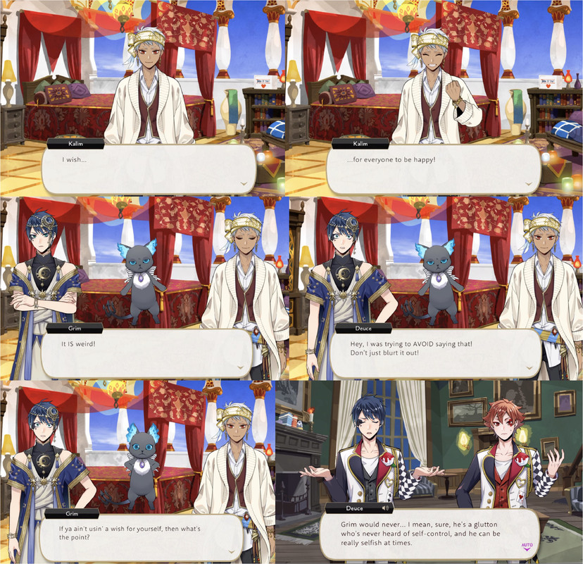 When Kalim’s wish for the Wish Upon a Star event is “for everyone to be happy,” Grim says it’s weird: “If ya ain’t usin’ a wish for yourself, then what’s the point?”