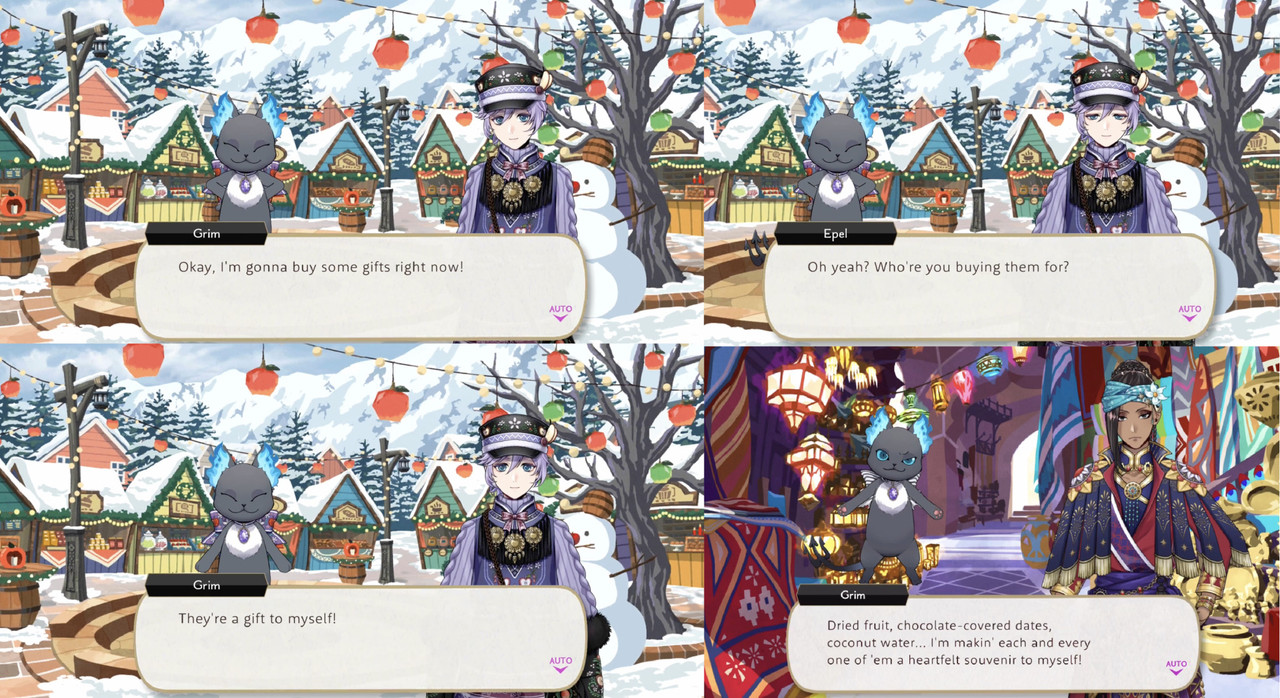 Grim happily buys souvenirs for himself in both Harveston and Firelit Sky (Epel: “somehow I’m not surprised”).
