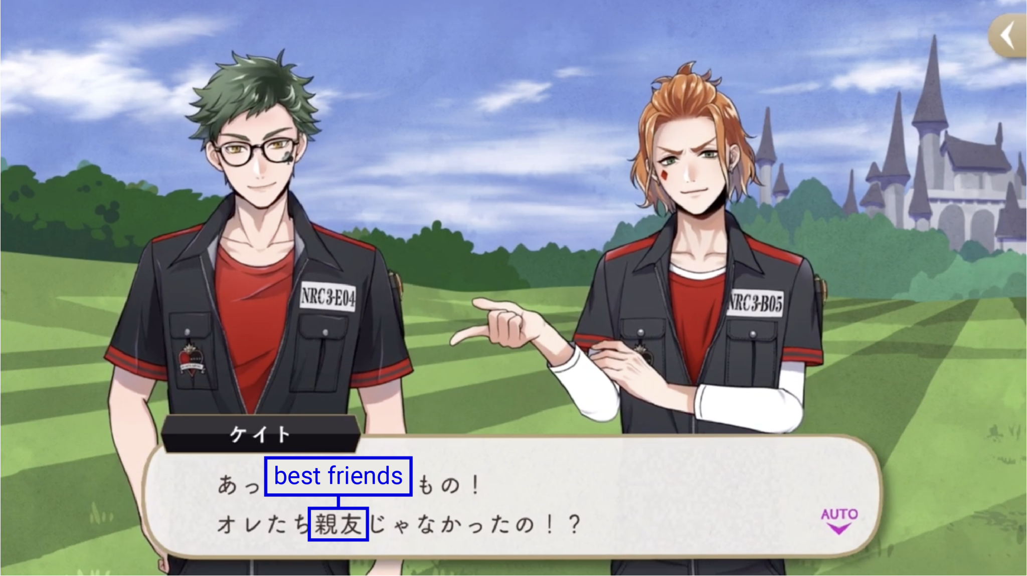 Jade says “friends” on EN but he is actually one of the 11 characters who has never referred to any other NRC student as a friend (if the “best friend” word explained above is counted separately). His original dialogue is, “everyone.” More here ▶︎