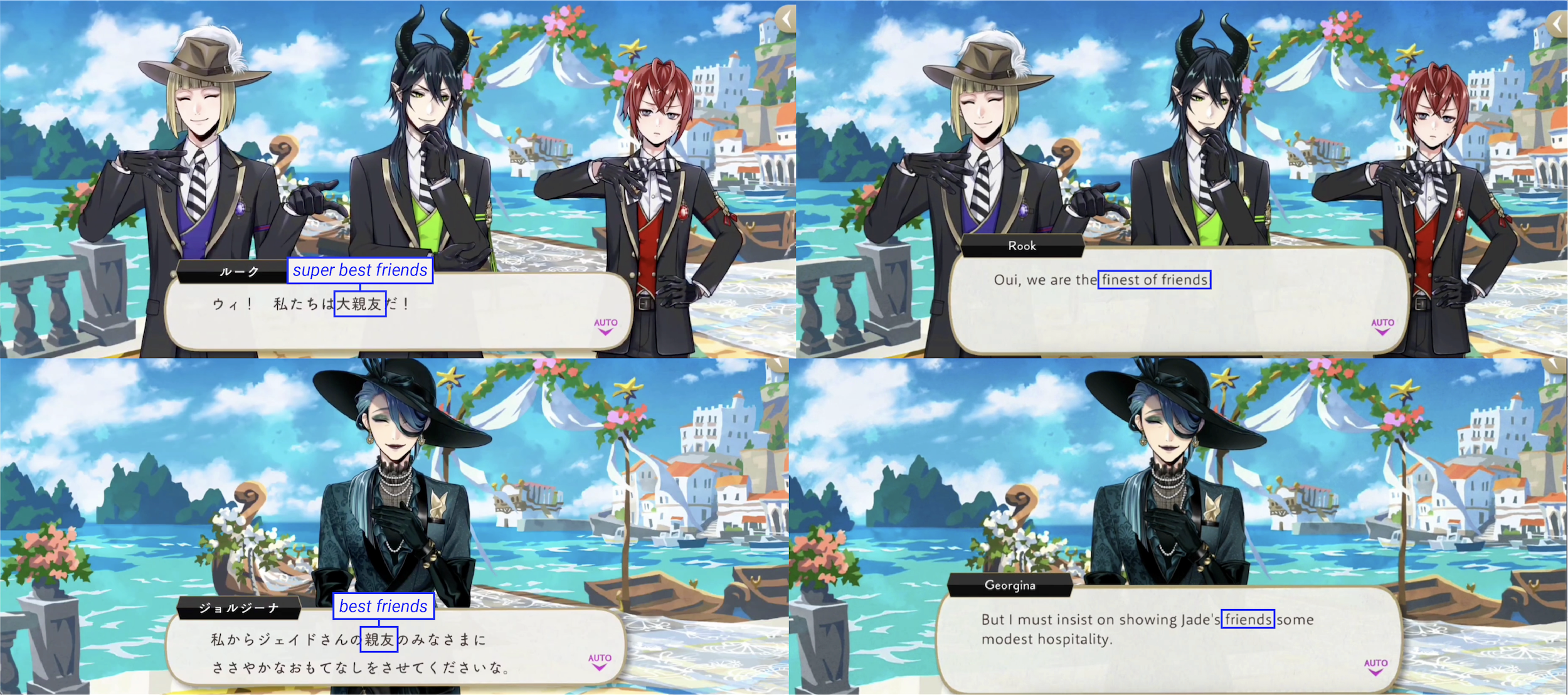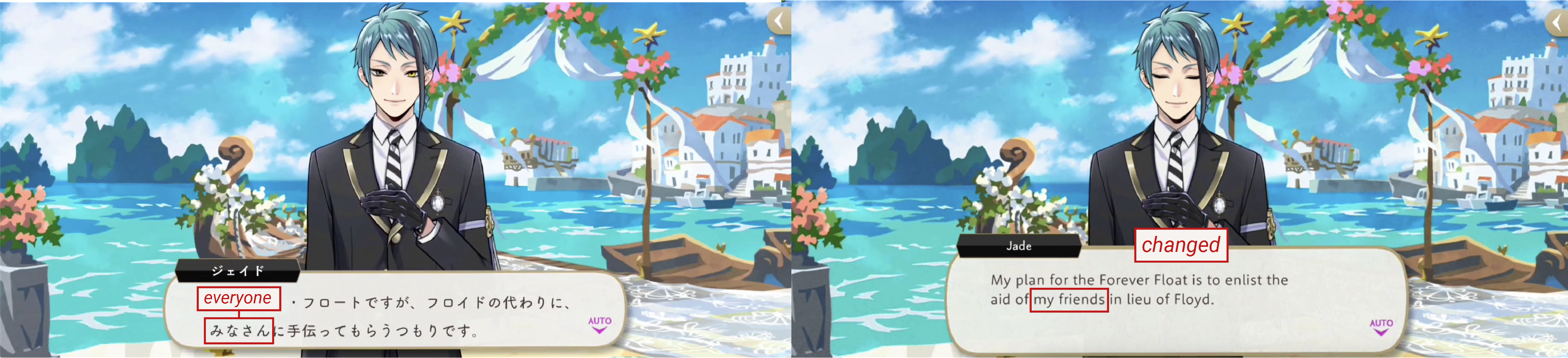 Jade refers to the students as his “best friends” in the original game, using a word (親友) that only four other characters have ever said: