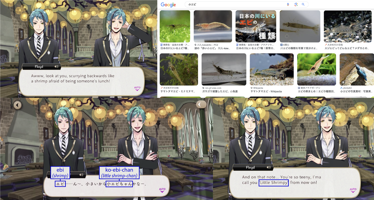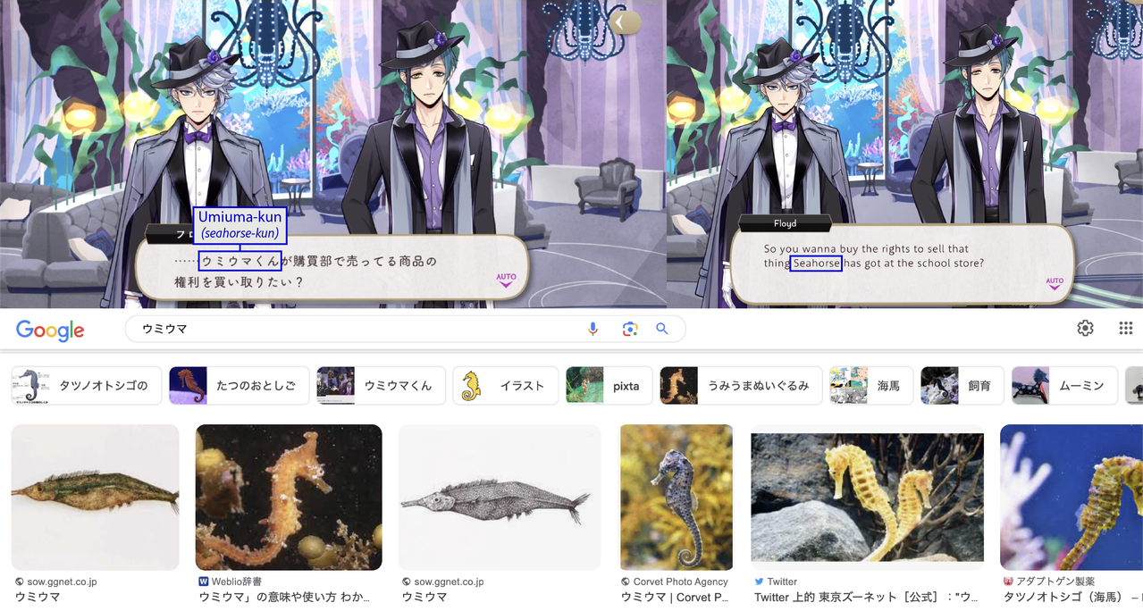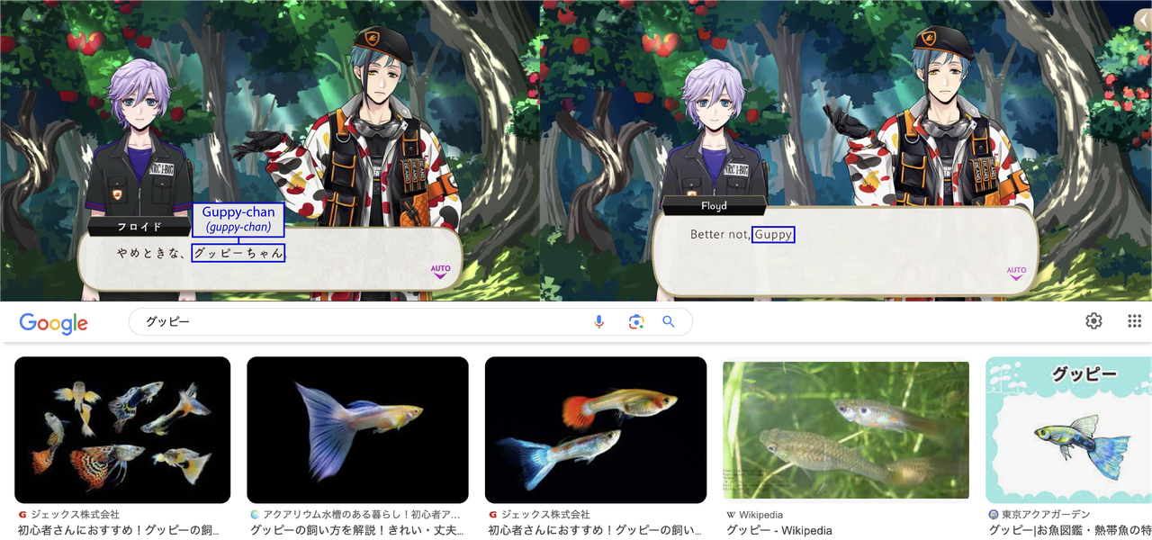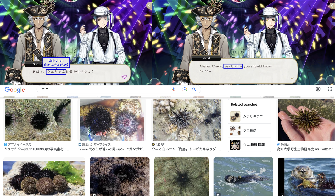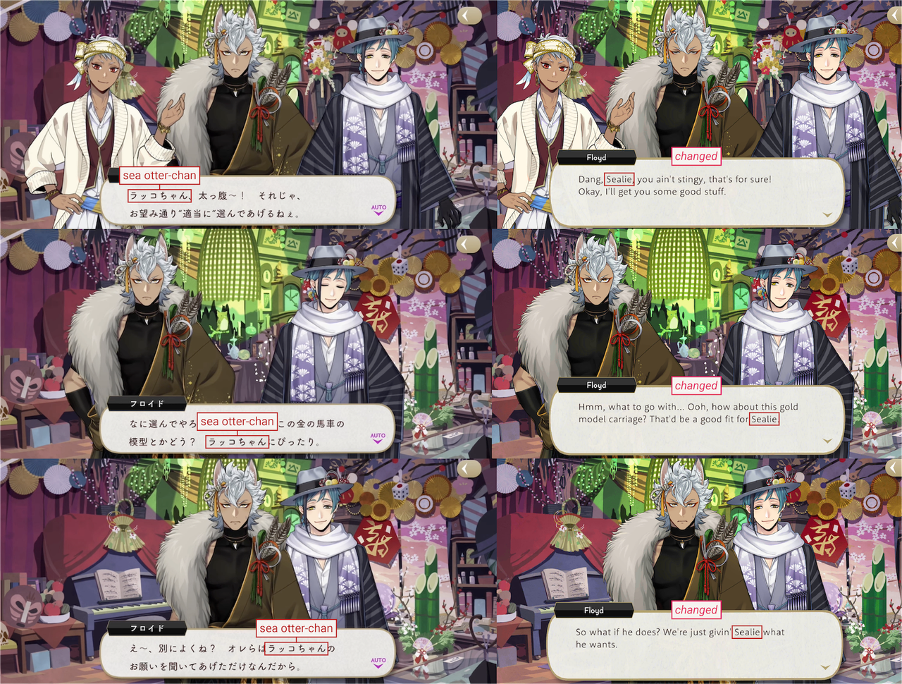 (Floyd’s nickname for Ruggie remains the same in the original game, but on EN it is “remora” in one place and “sharksucker” in others, which seem to be two names for the same fish.)