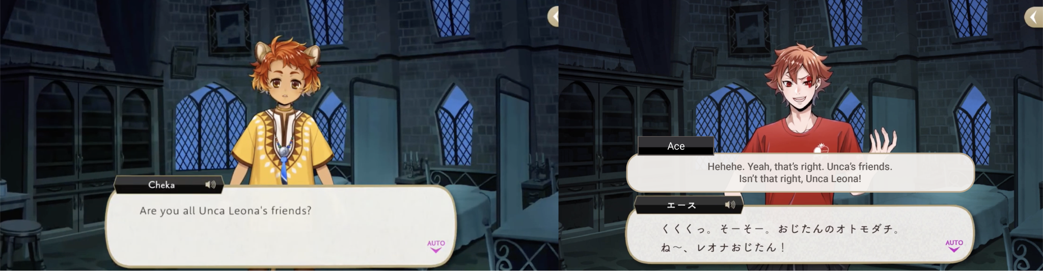 ・Sarcasm (i.e. Ace teasing Leona by referring to himself as one of “Unca Leona’s friends”)