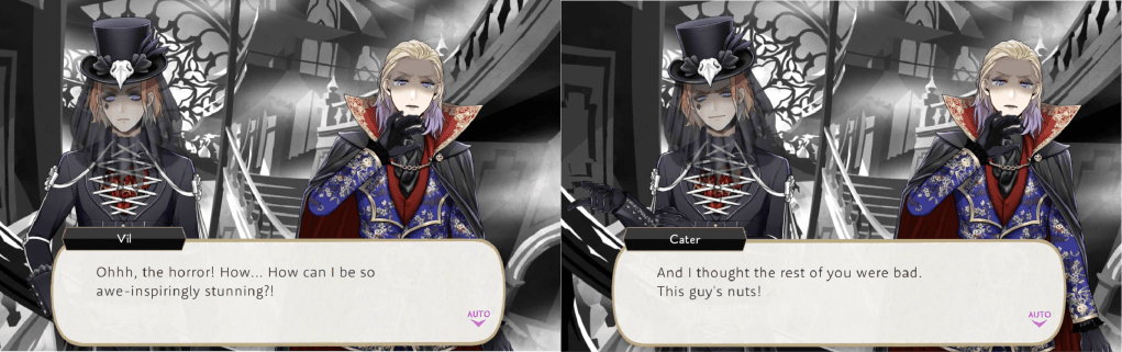 They are the only two possessed that get paired together during Halloween, with possessed-Cater referring to Vil as “nuts” as possessed-Vil bemoans his own beauty.