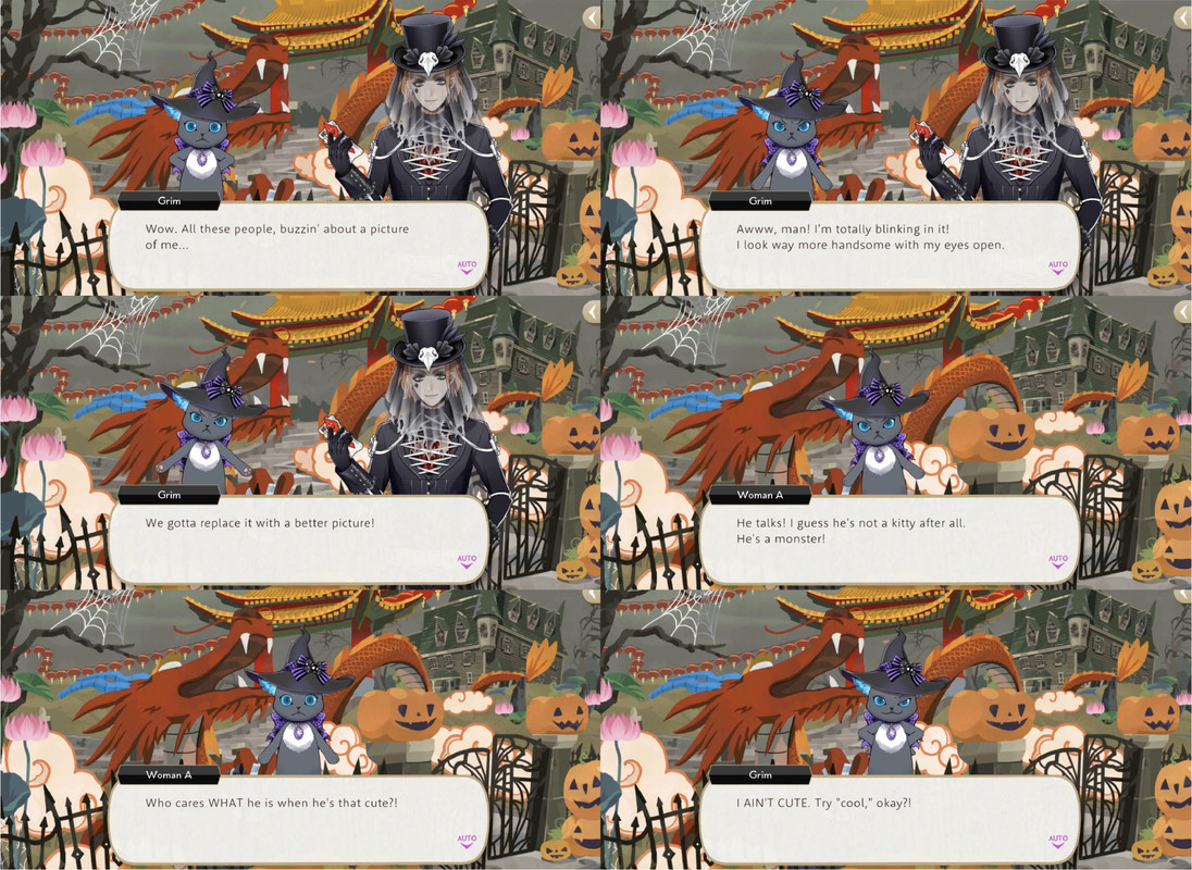 Grim is happy with the attention he receives during Halloween until it gets to be too much, at which point he announces that Halloween is “just a big con” (the event ends with Grim getting the prefect to hold hime in a picture so that he can be “front and center”).