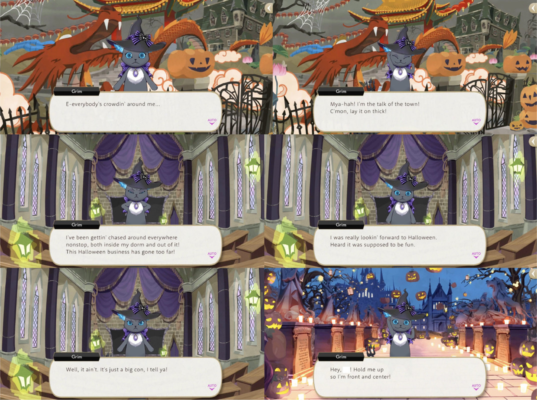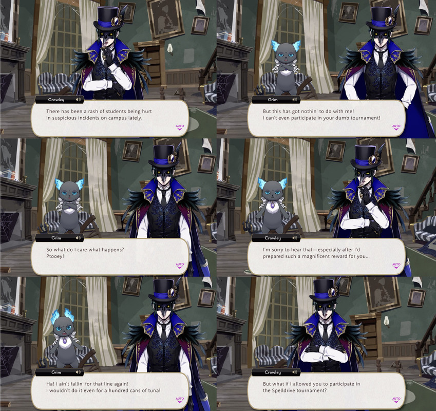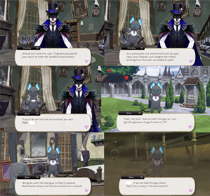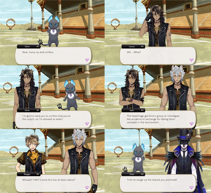 The event ends with a performance lead by Malleus, Azul and Idia, to which Grim reacts, “Wish I could be the center of attention like those three.”
