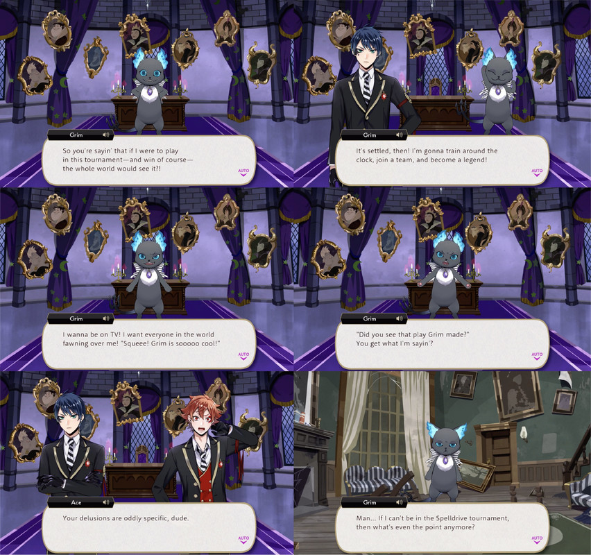 Grim also comments about wanting people to fawn over and cheer for him in a chat and a vignette.