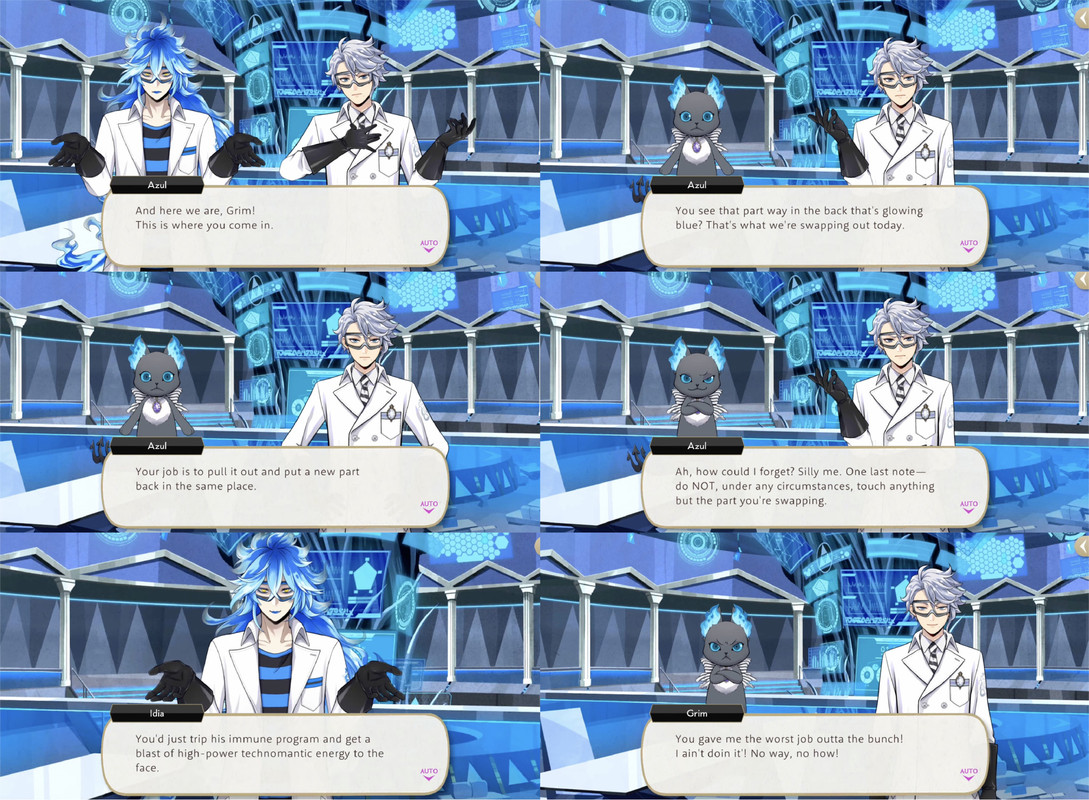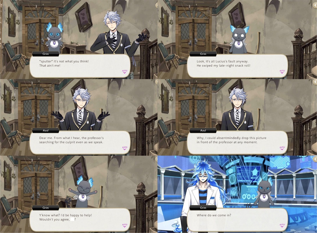 In a vignette Azul blackmails Grim into helping him and Idia with maintenance on Ortho.
