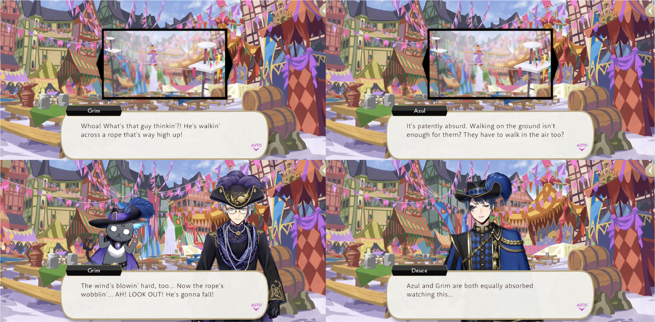 During Glorious Masquerade Azul and Grim find common ground when they become equally absorbed in a tightrope walking performance.