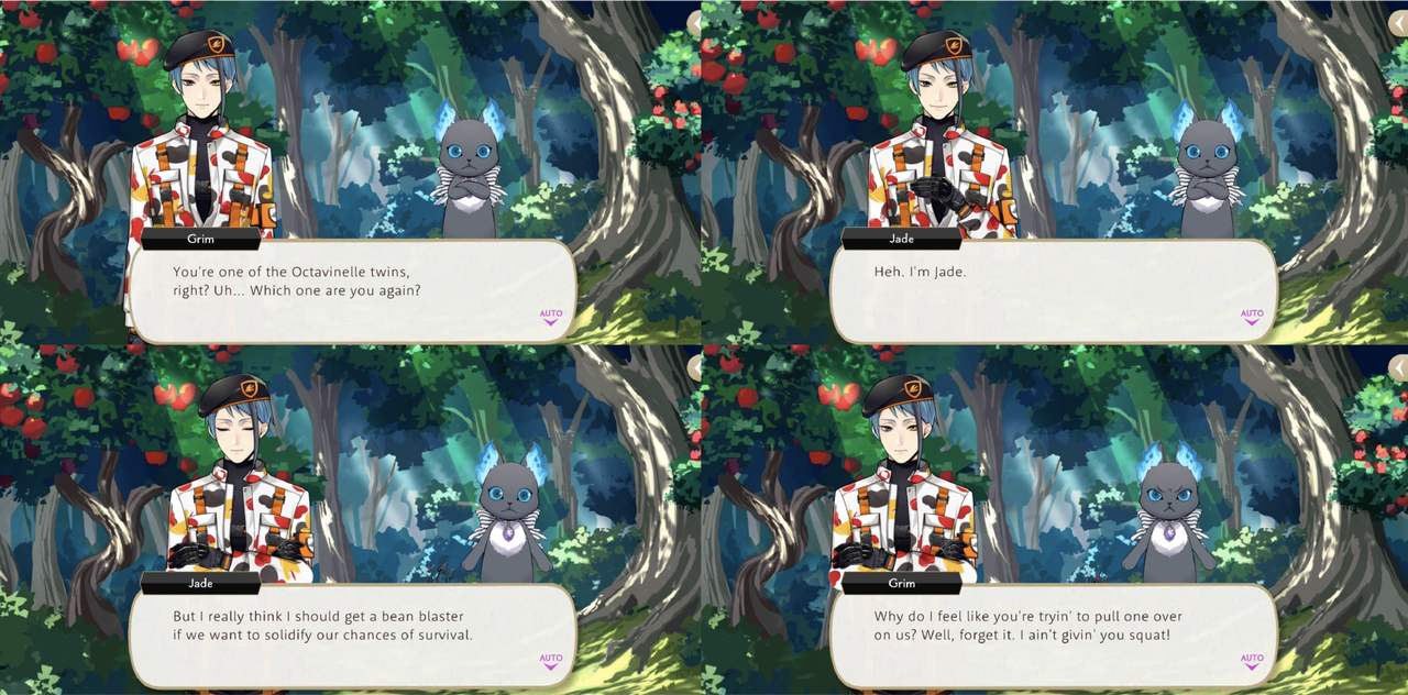 Grim seems suspicious of Azul, calling him “real dastardly” (Azul: “I prefer to be called an intellectual”).