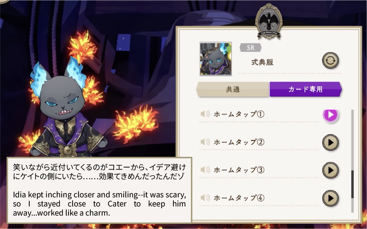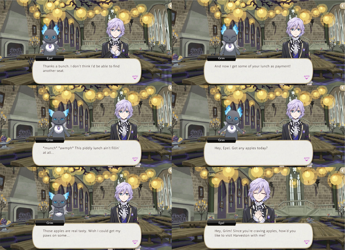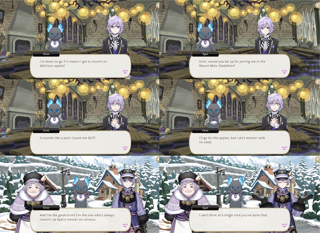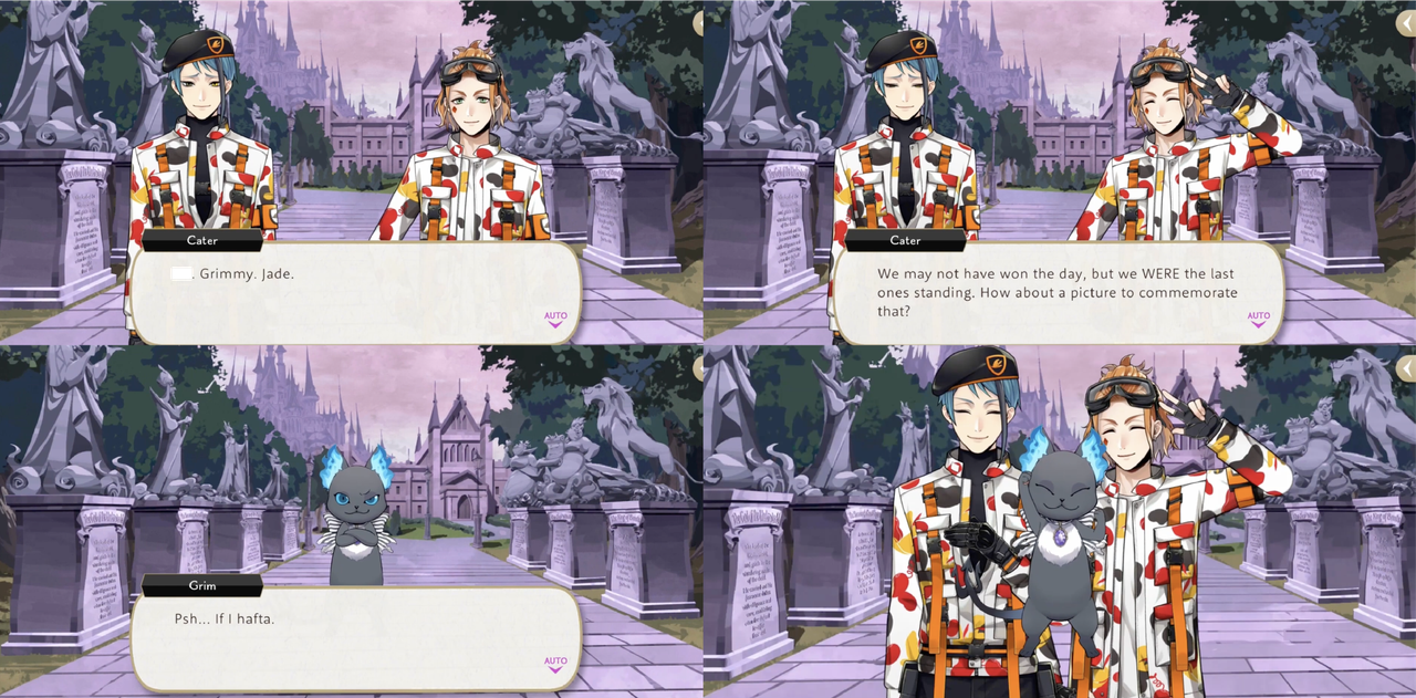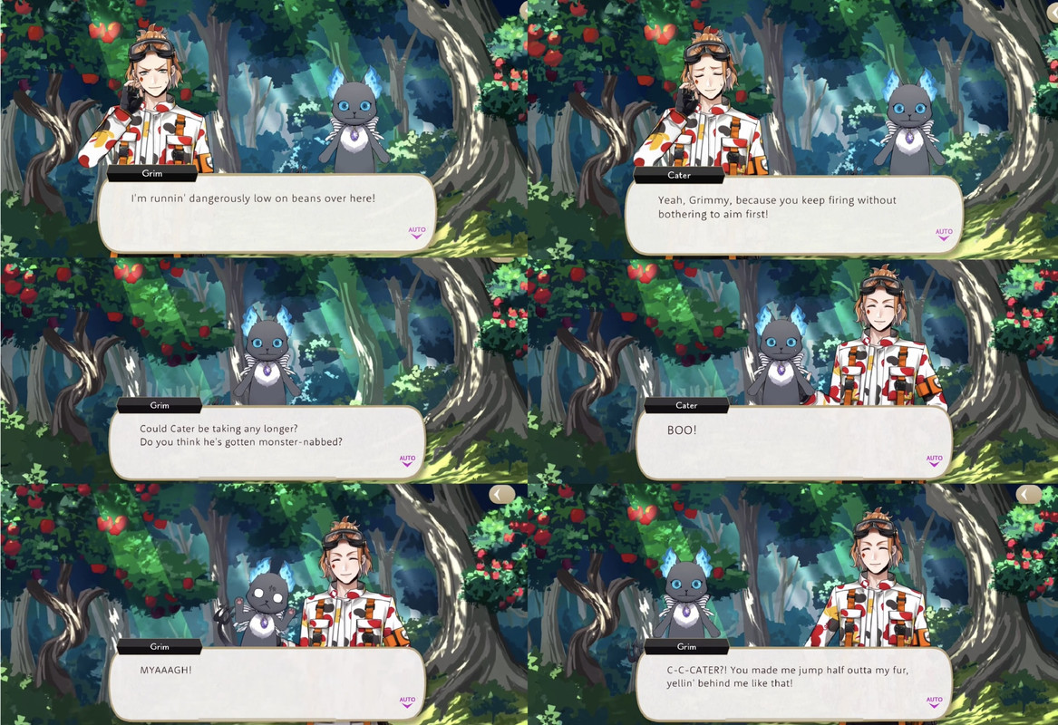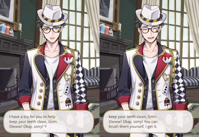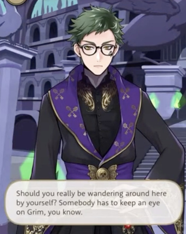 Grim has a voice line about sticking close to Cater in order to get Idia to leave him alone.